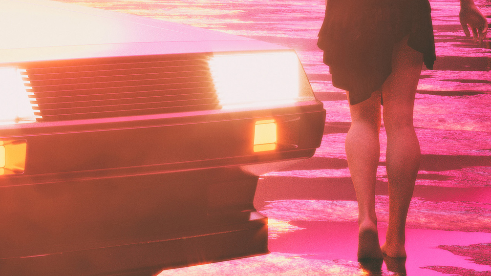11 pieces of 4K synth wave / new retro wave inspired and neon soaked DeLorean fan artworks